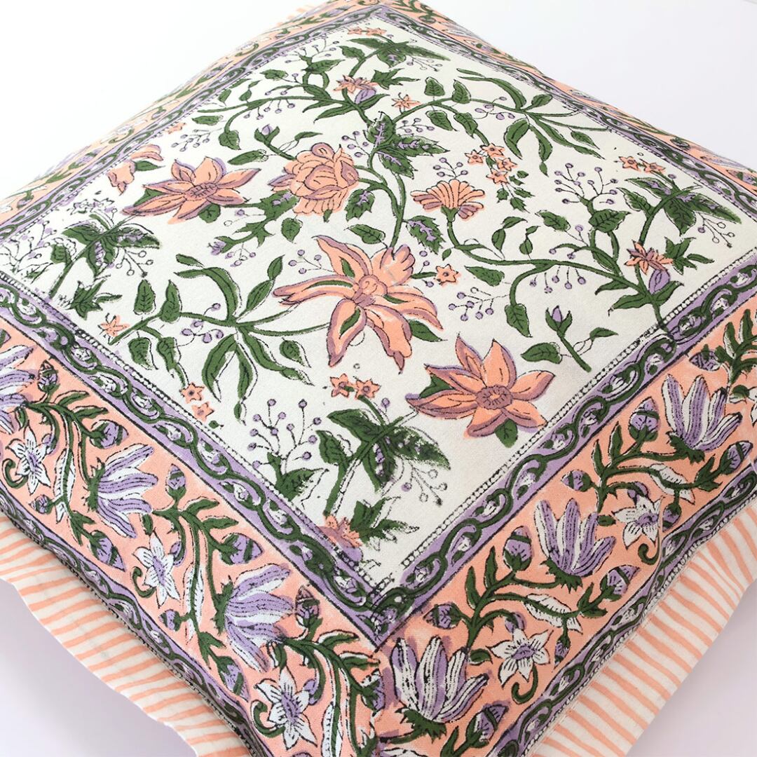 華やかなボタニカル柄のクッションカバー。