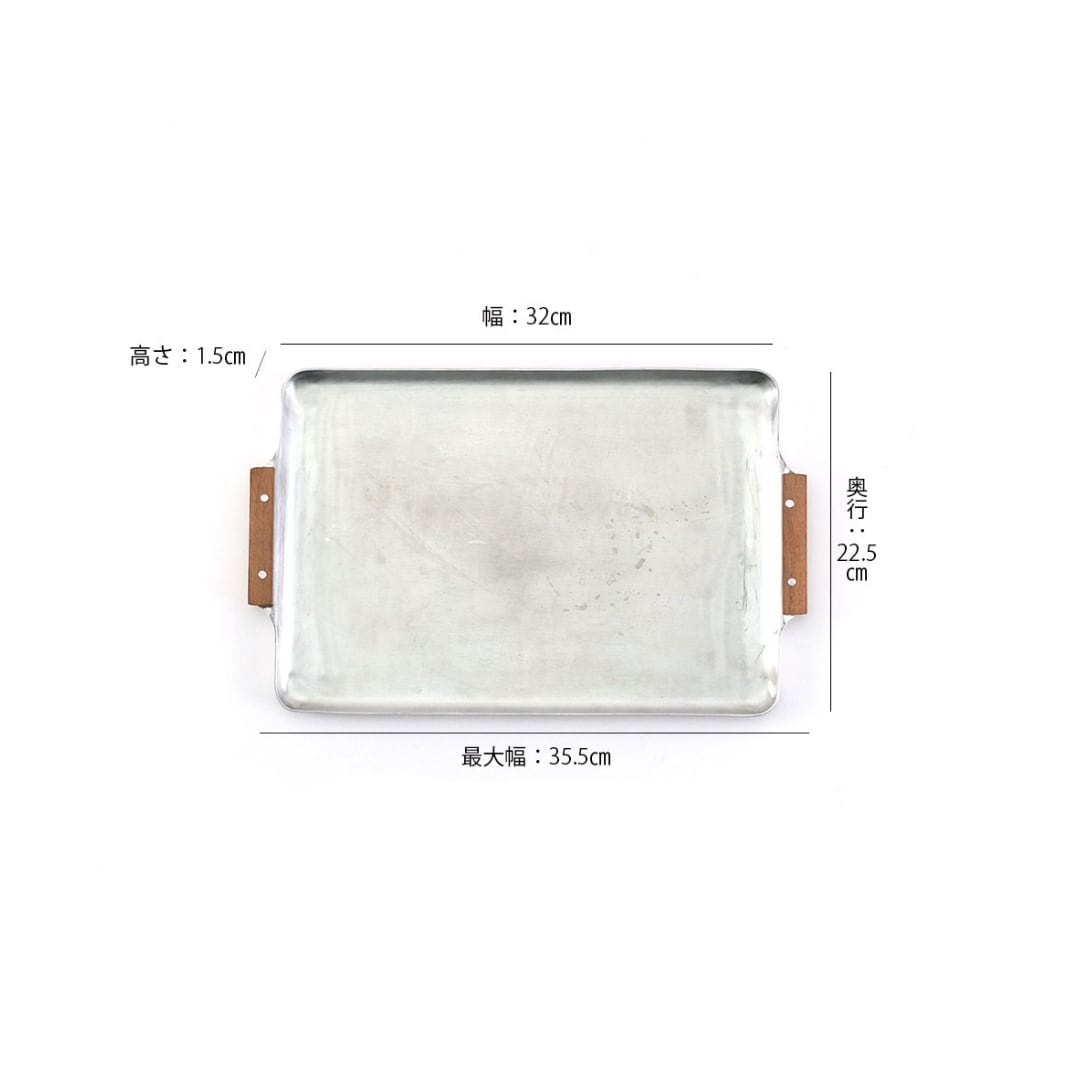 ノスタルジックな木の持ち手のアルミトレーS