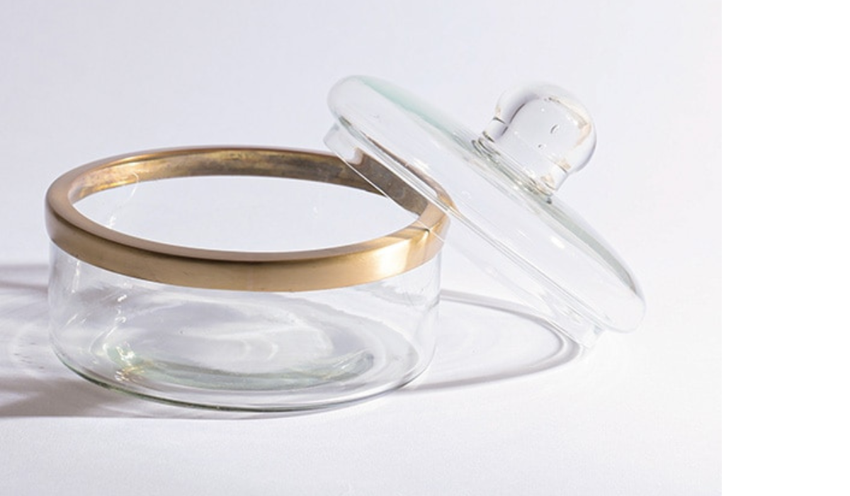 真鍮とガラスで仕立てた、小さなキャニスター。