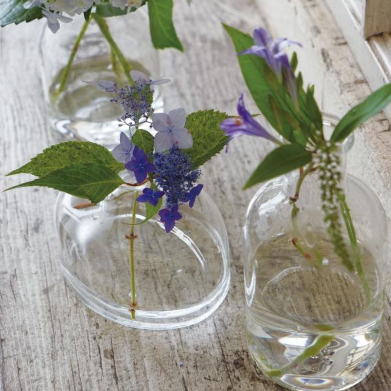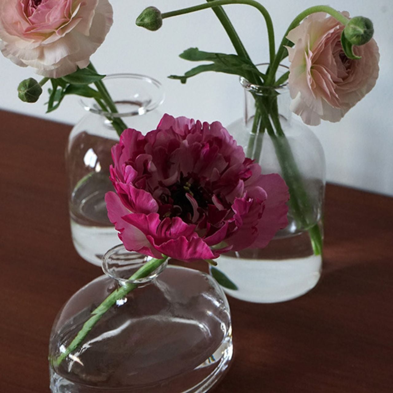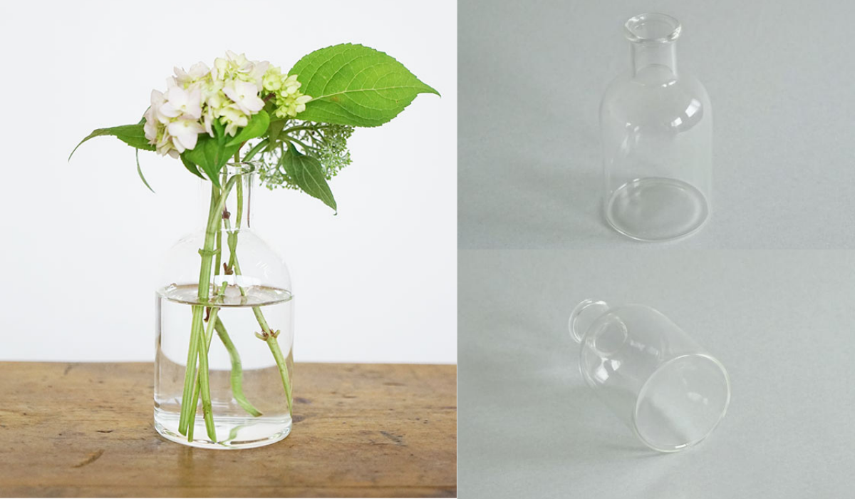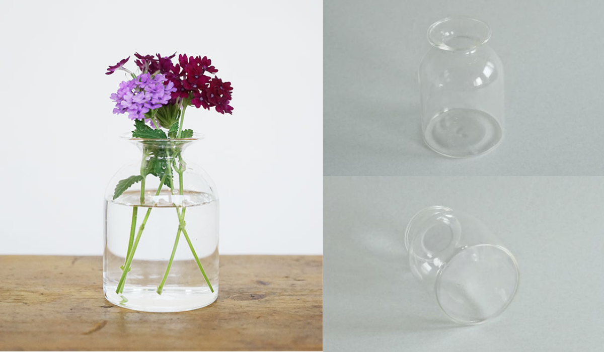 クリアガラスの透明感が美しい、小ぶりなフラワーベース。