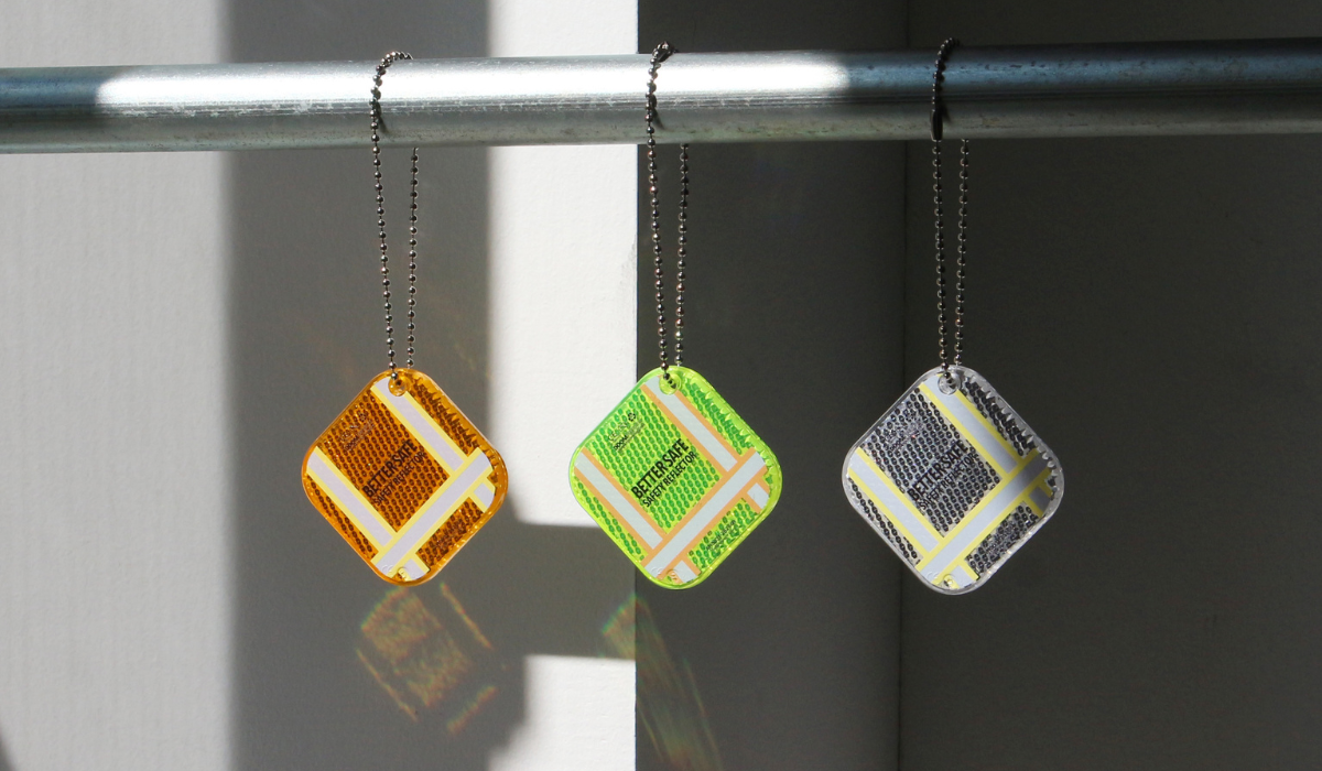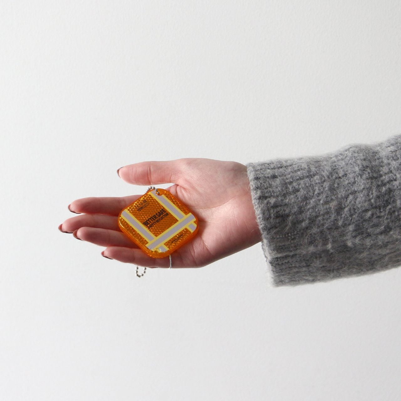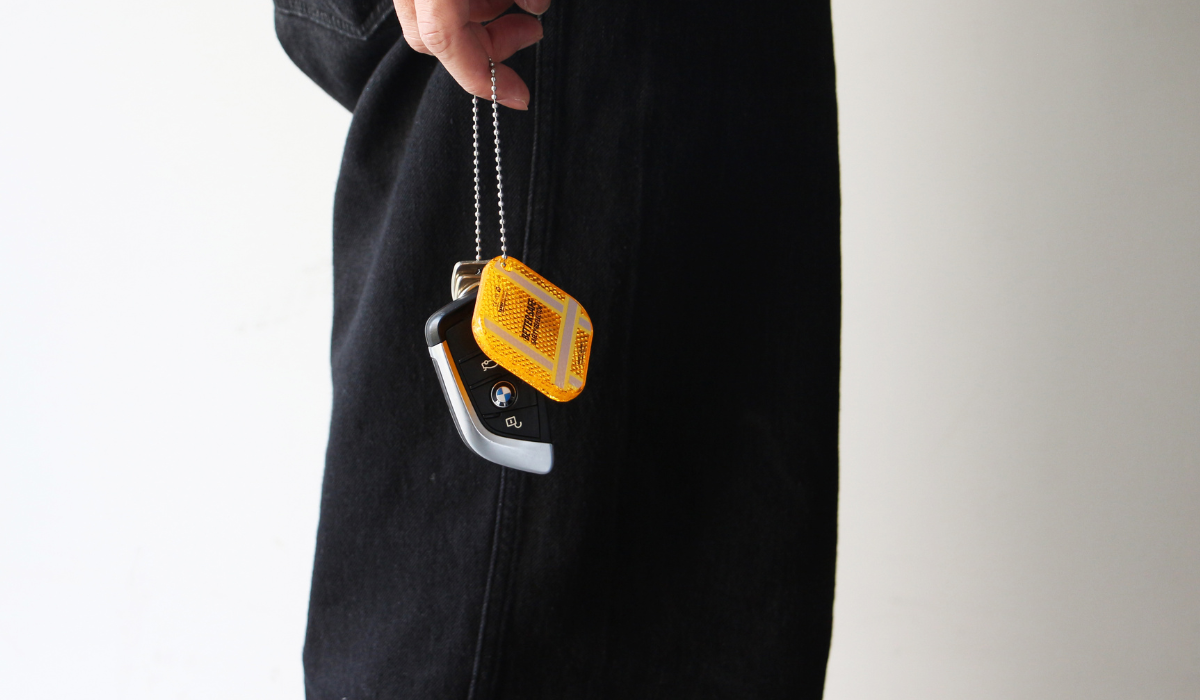 ※リフレクターをジャケット、バッグ、ベビーカーなどにしっかり取り付けてください。車のヘッドライトなどの光を反射し、ドライバーに存在を知らせます。