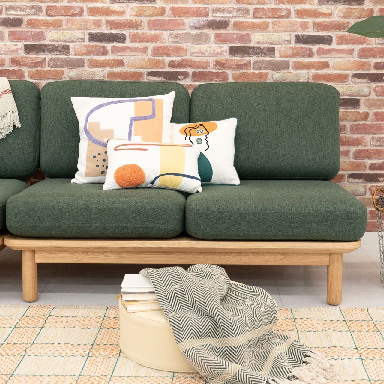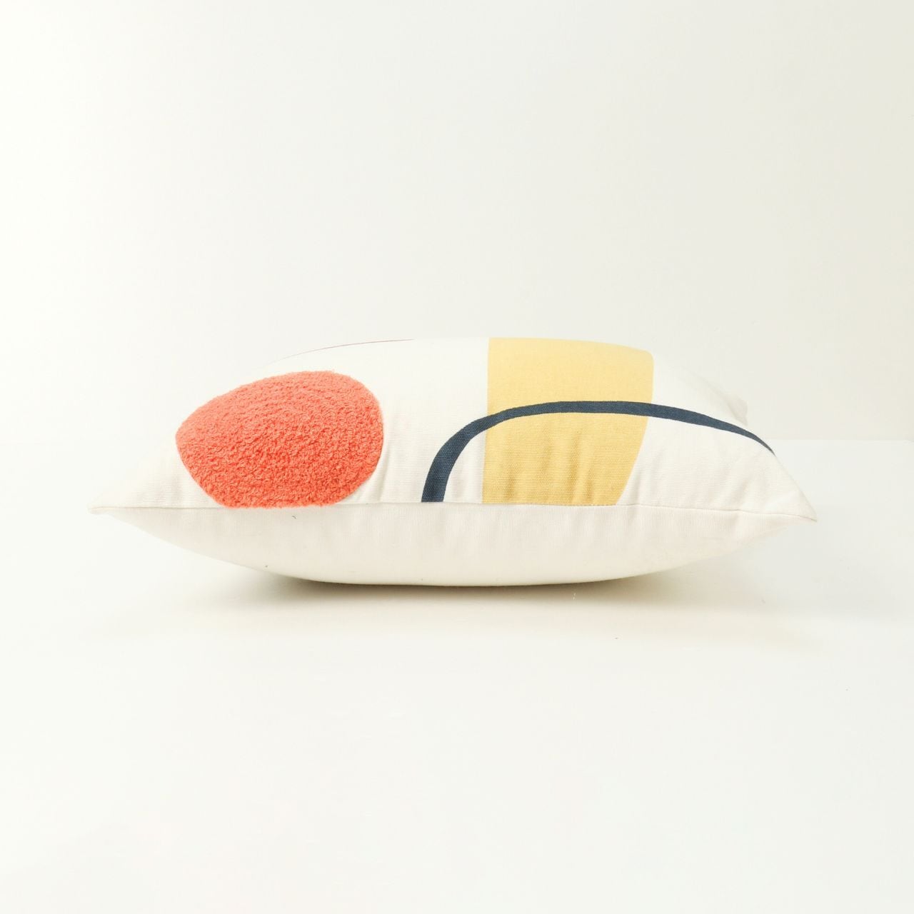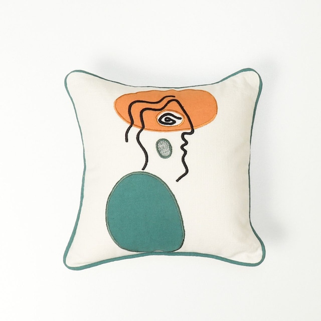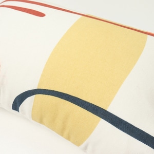 アートポスターのようなモチーフをプリントや刺繍で表現したクッション。