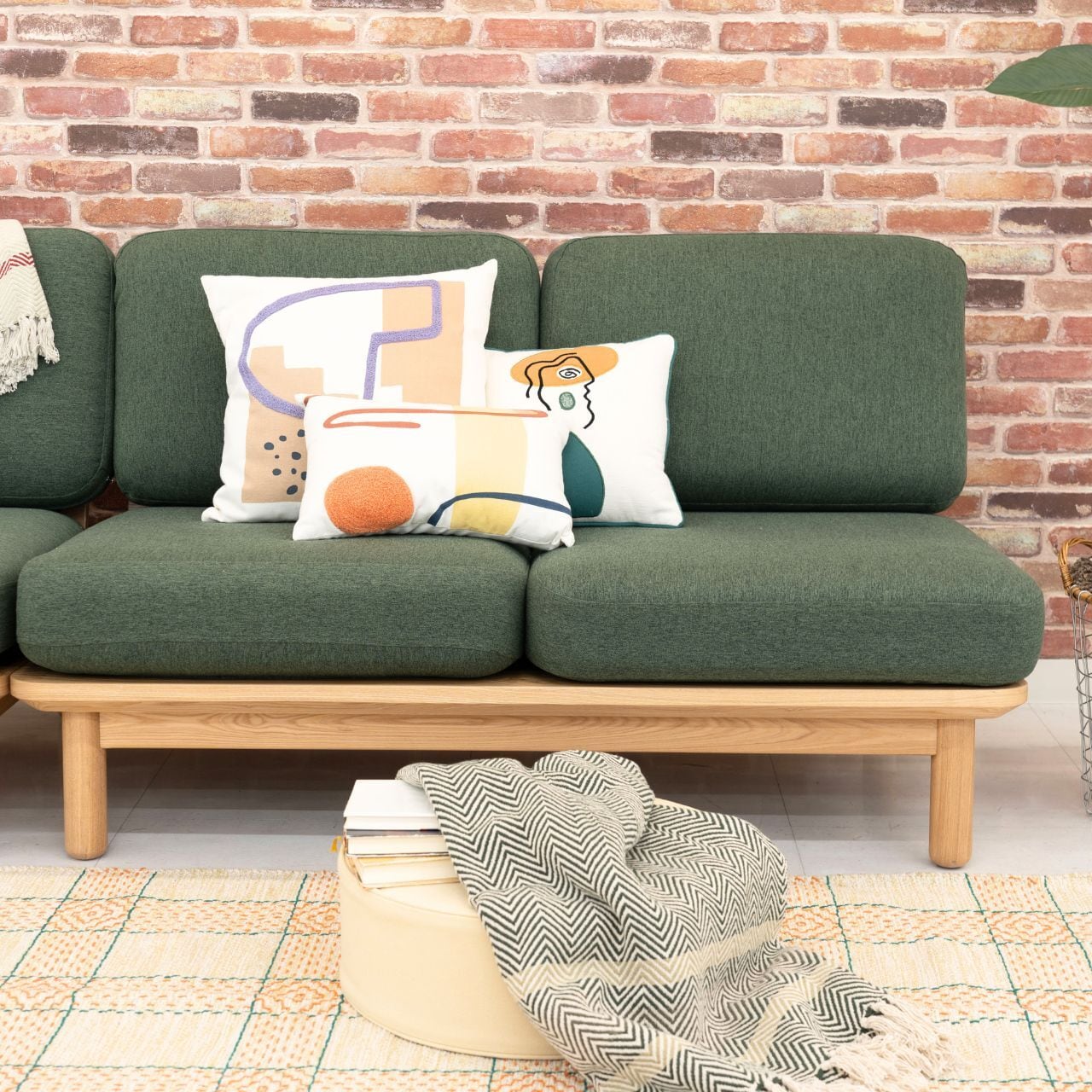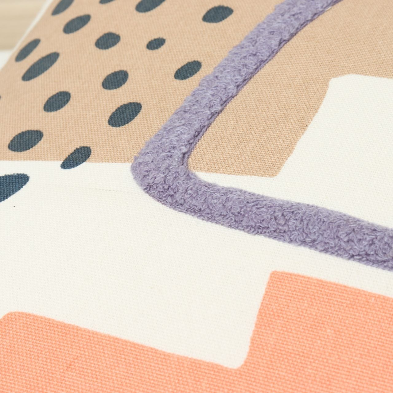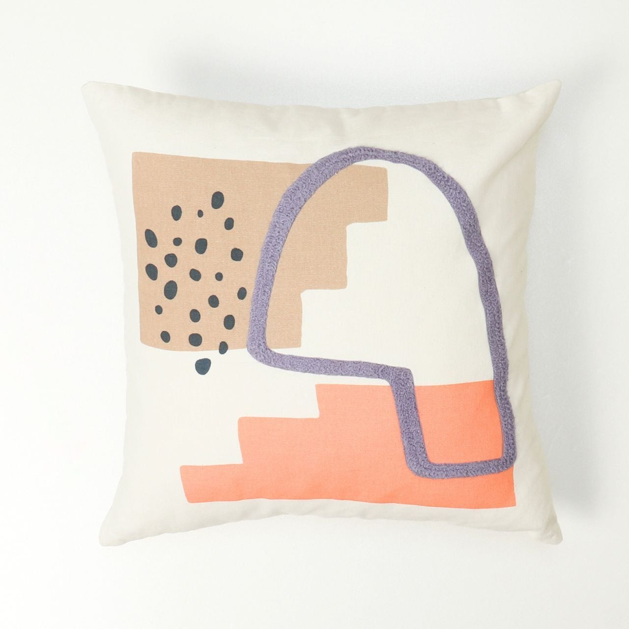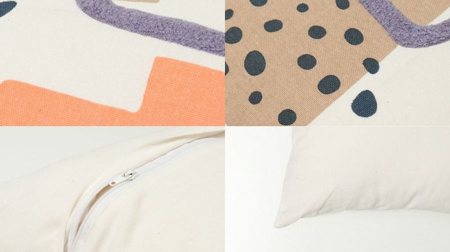 アートポスターのようなモチーフをプリントや刺繍で表現したクッション。