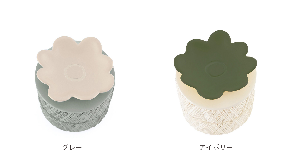 レジン素材で作られた、花模様のフタがアクセントになったキャニスター。