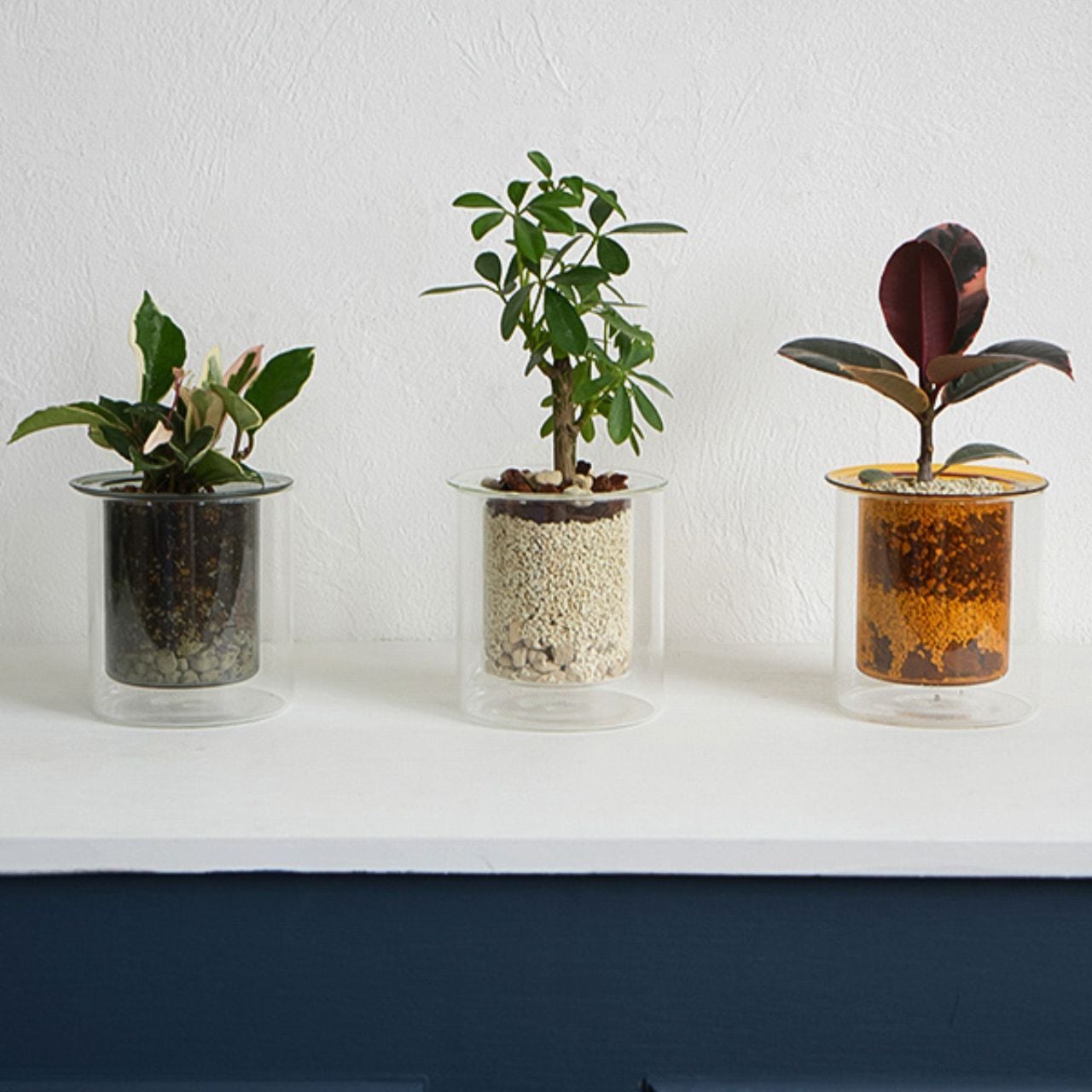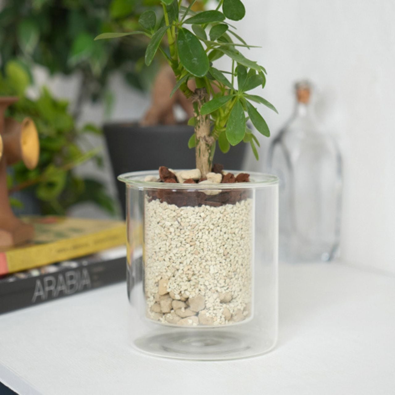 ガラスならではの透明感が、土の層や根の伸びる様子まで美しく映し出し、