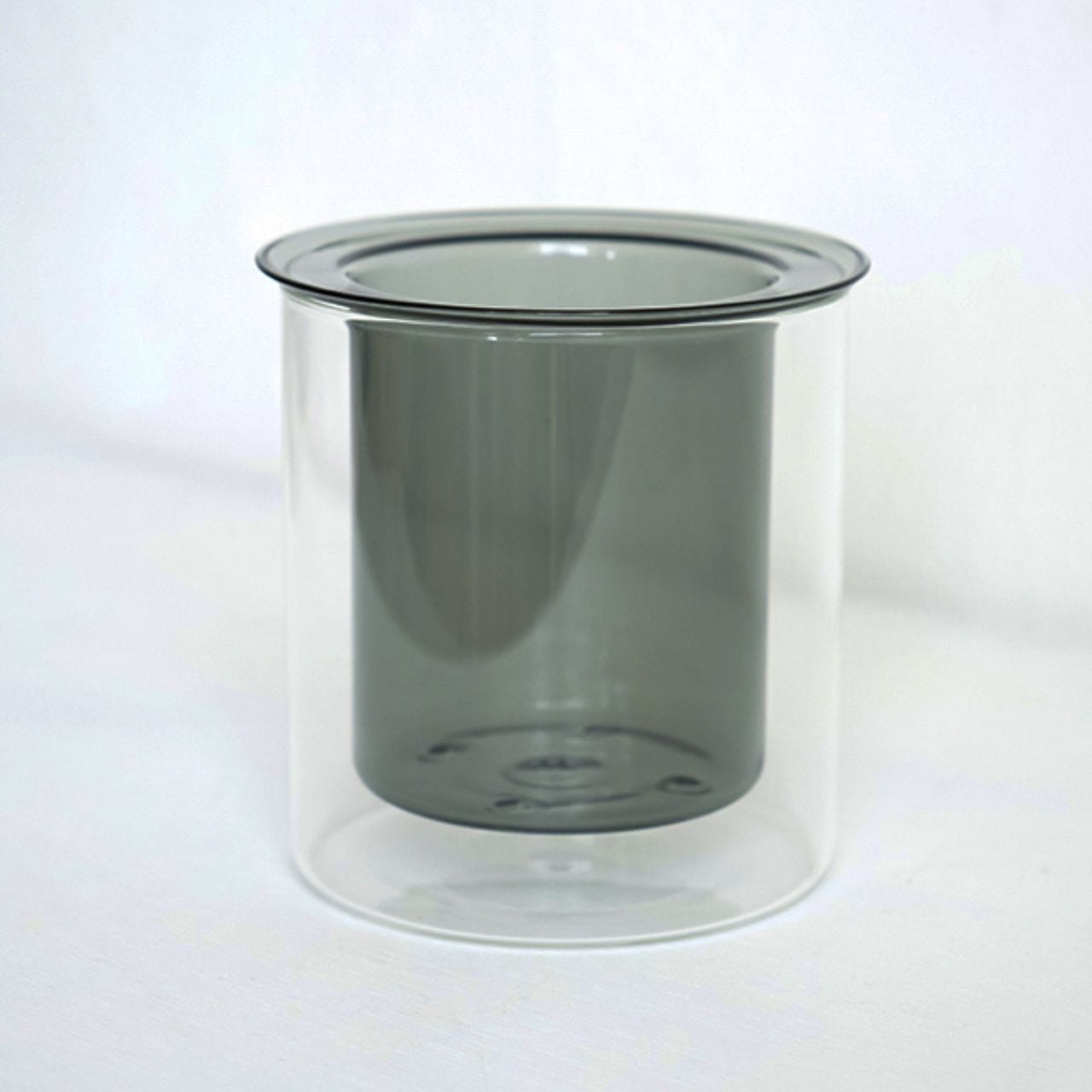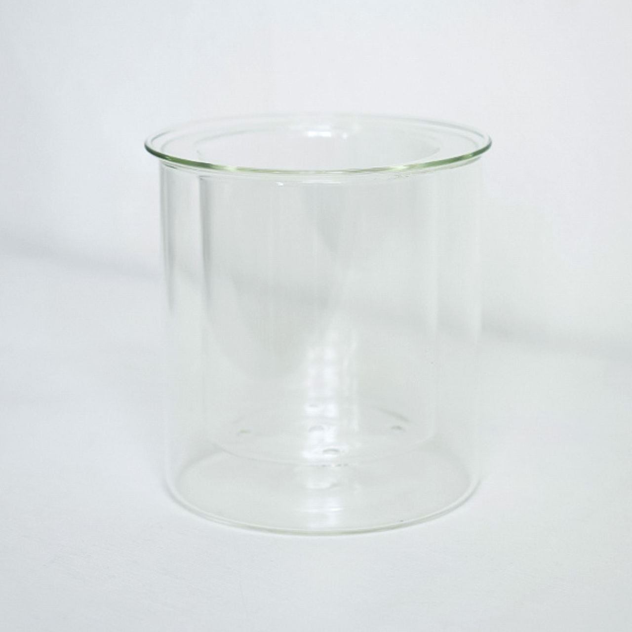 シンプルな円筒形と、やわらかく広がるリムのフォルムが美しい、ガラス製のプランターカバーです。