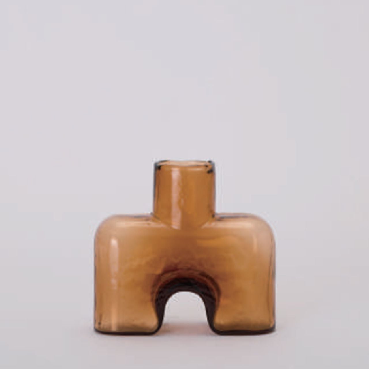 厚みのあるガラスでつくられた、どこか建築的なフォルムが印象的なフラワーベース。