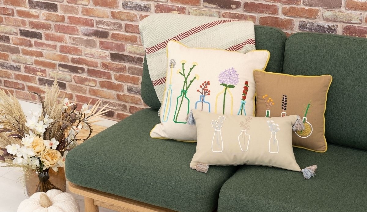 ソファーやチェアにさっと置くだけでアクセントになるカラーです。