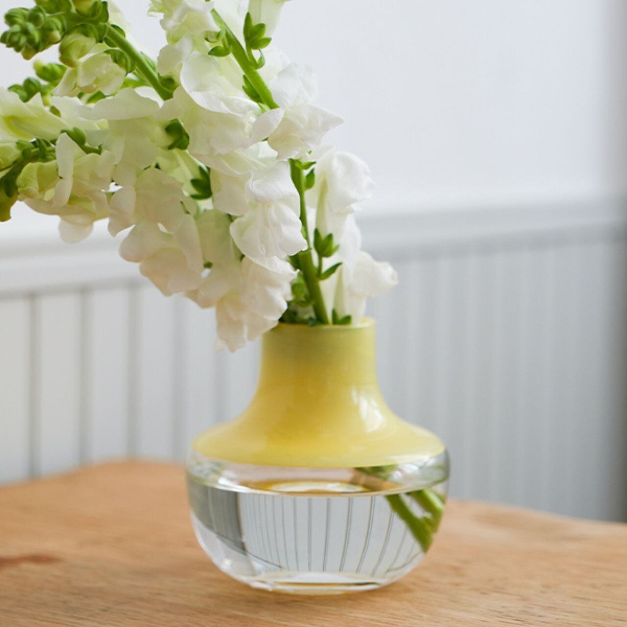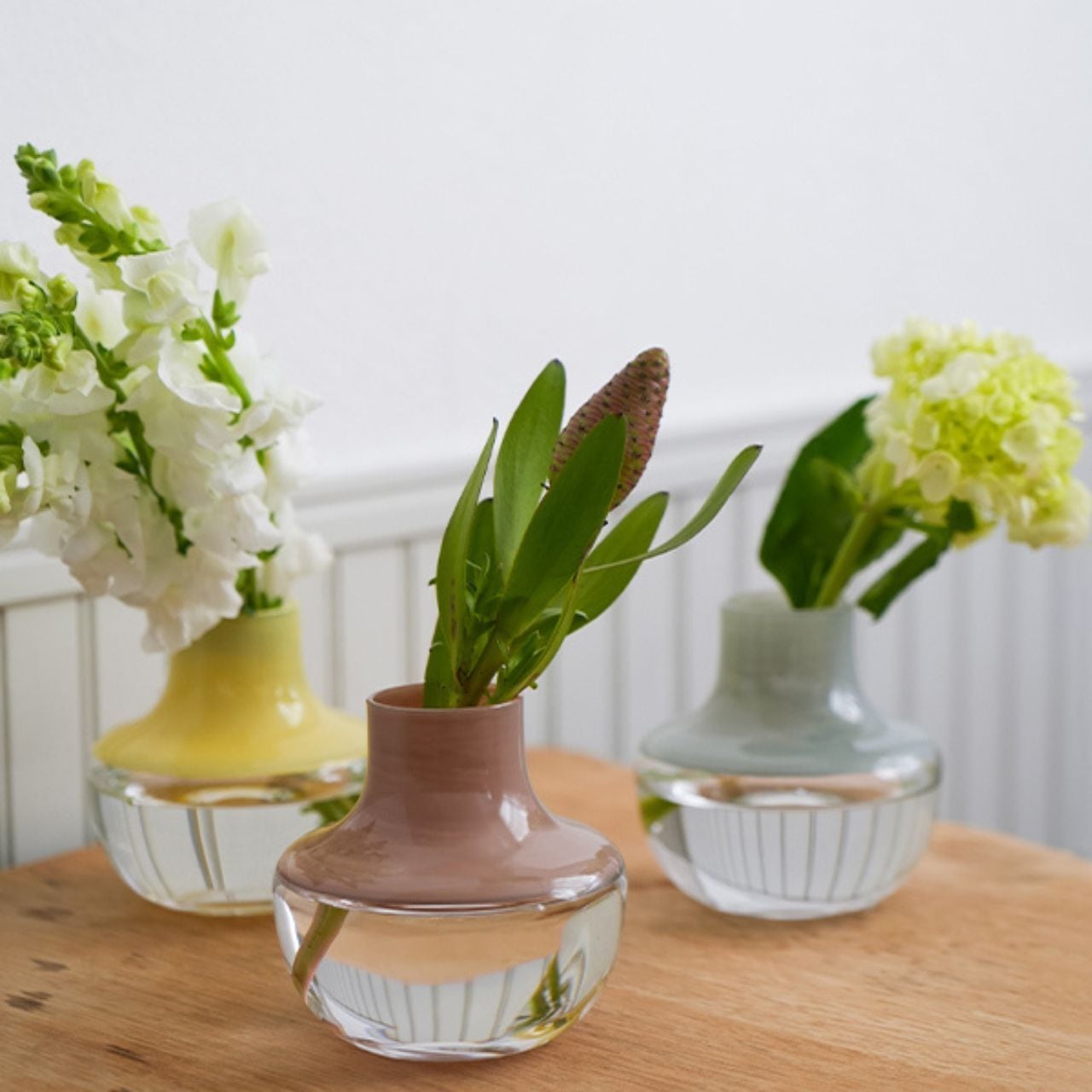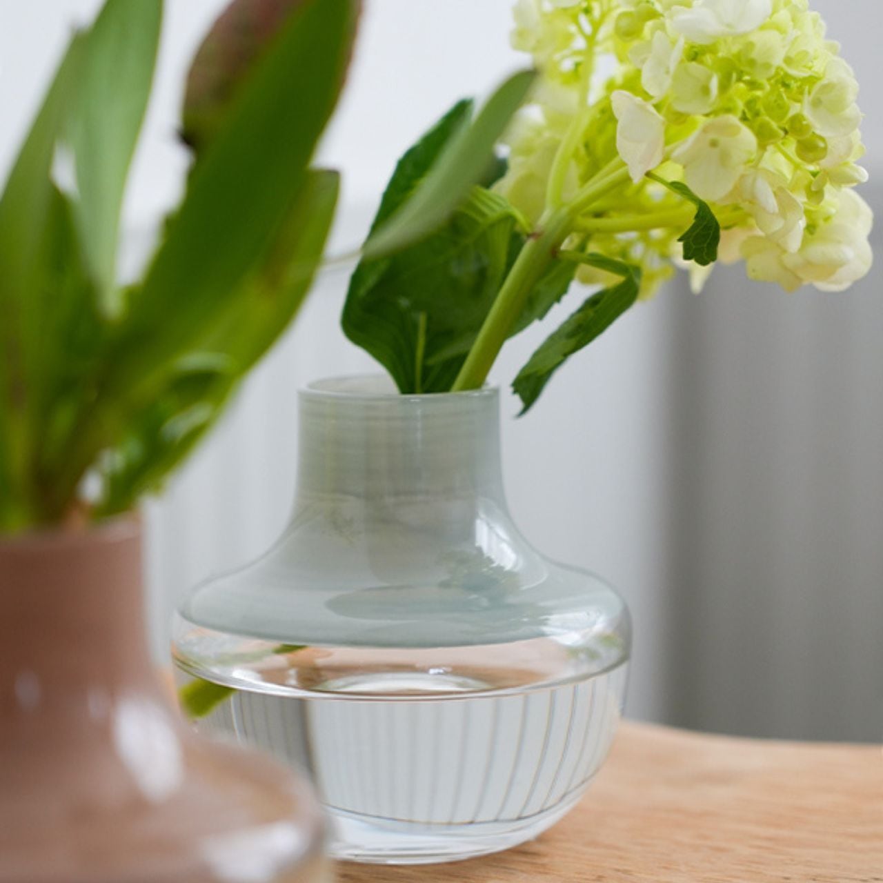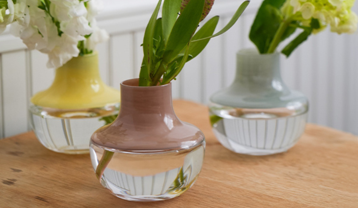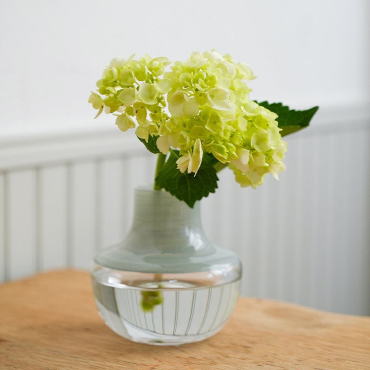 小さなお花やグリーンと一緒に、日常の風景にそっと彩りを添えてくれるガラスベースです。