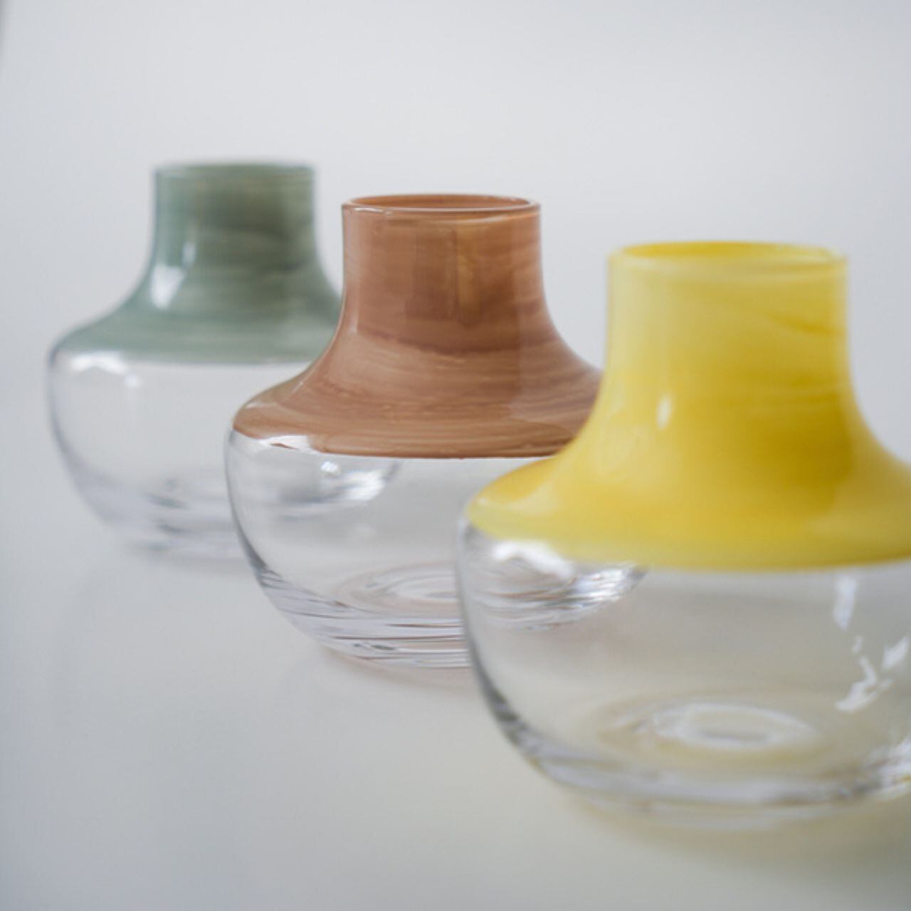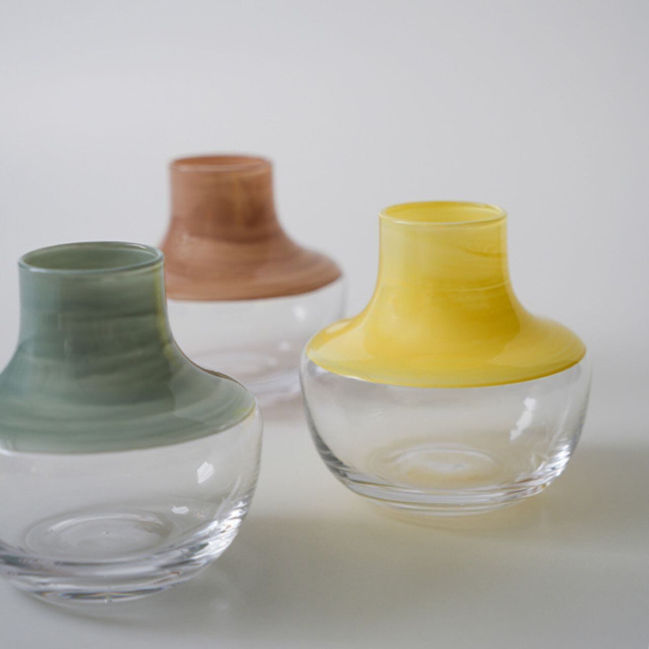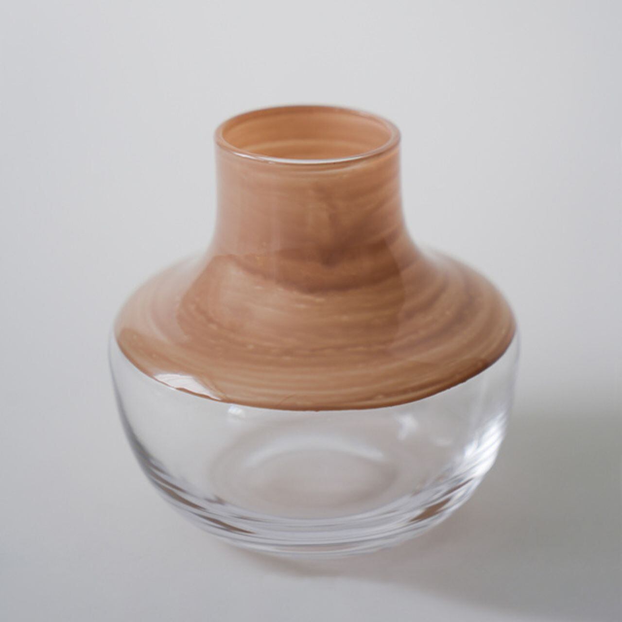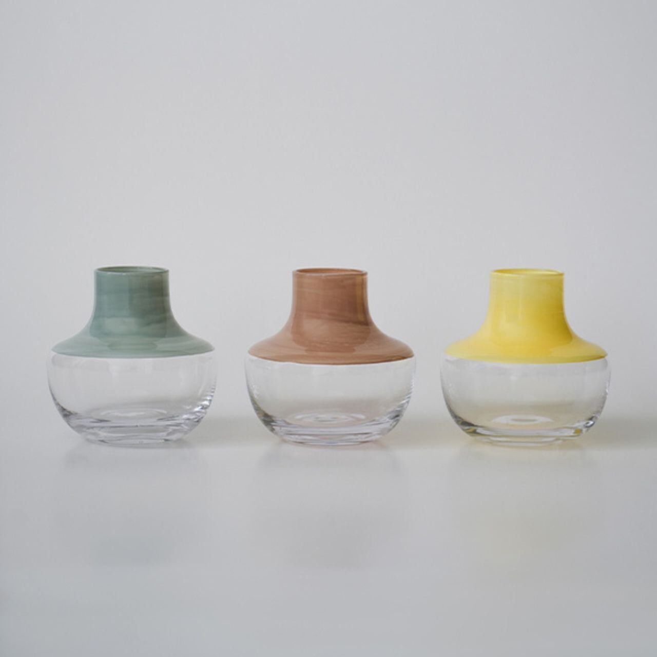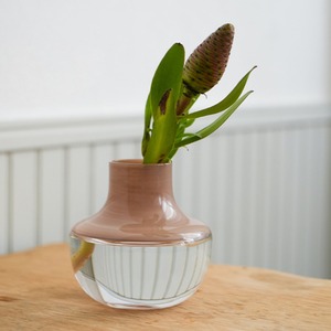 ツートンカラーが目を引く、コンパクトサイズのガラスベースです。