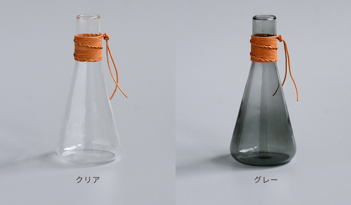 革ひも×ガラス。フラスコみたいな一輪挿し