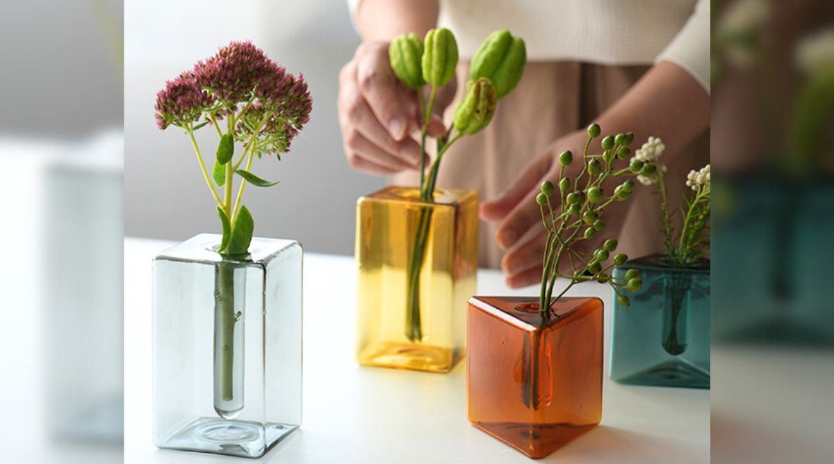 ころんとした多角形フォルムがかわいらしいミニサイズのフラワーベースです。