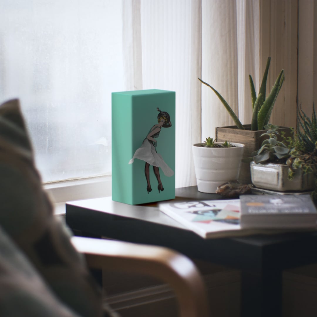 フラッパー・ティッシュは普通のティッシュに女性のスカートがふわりと風になびくという要素を加え、誰かが箱からティッシュを取り出す度に女性を脱がせるような感覚を与えるユニークなテッシュケース。
