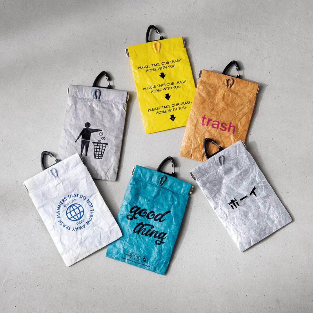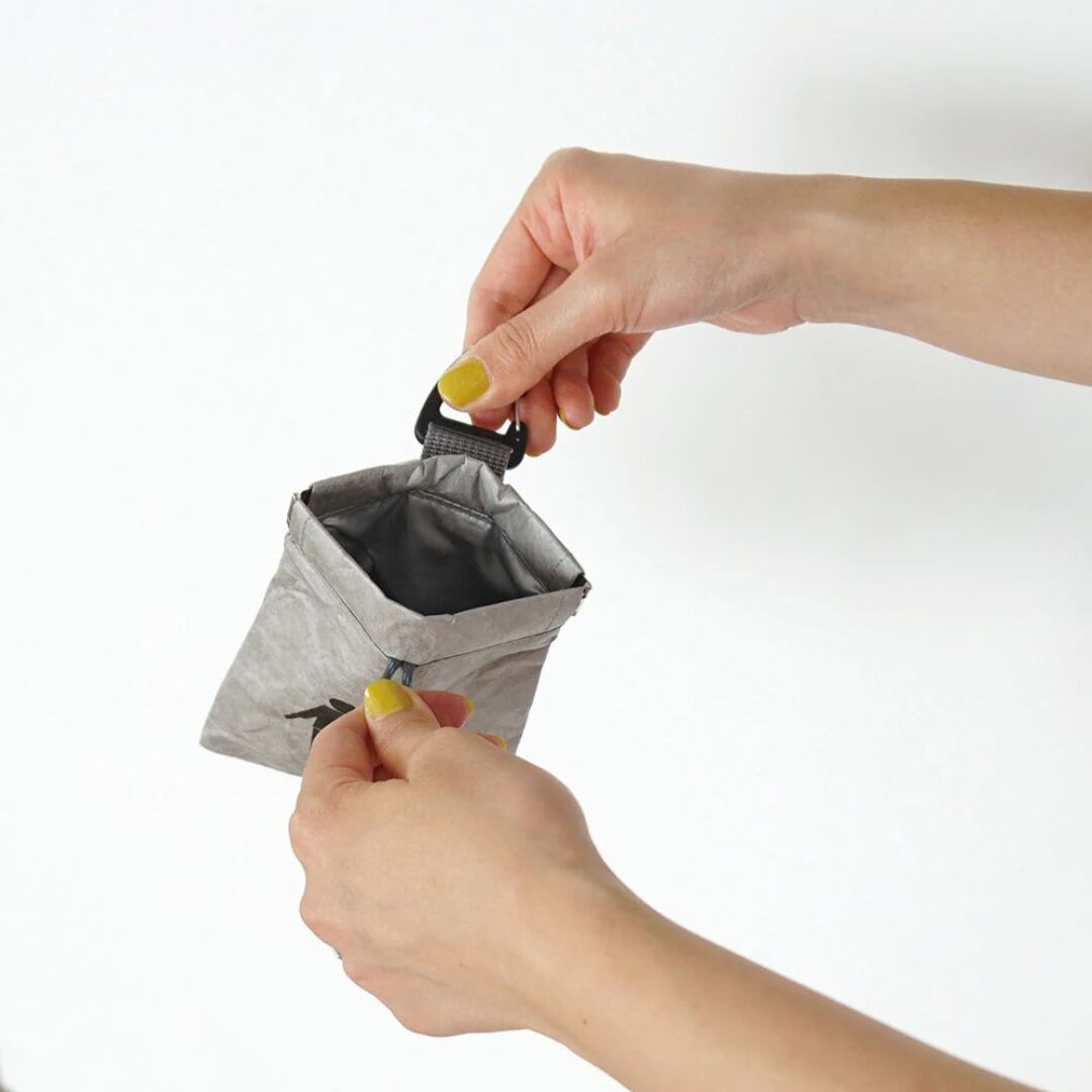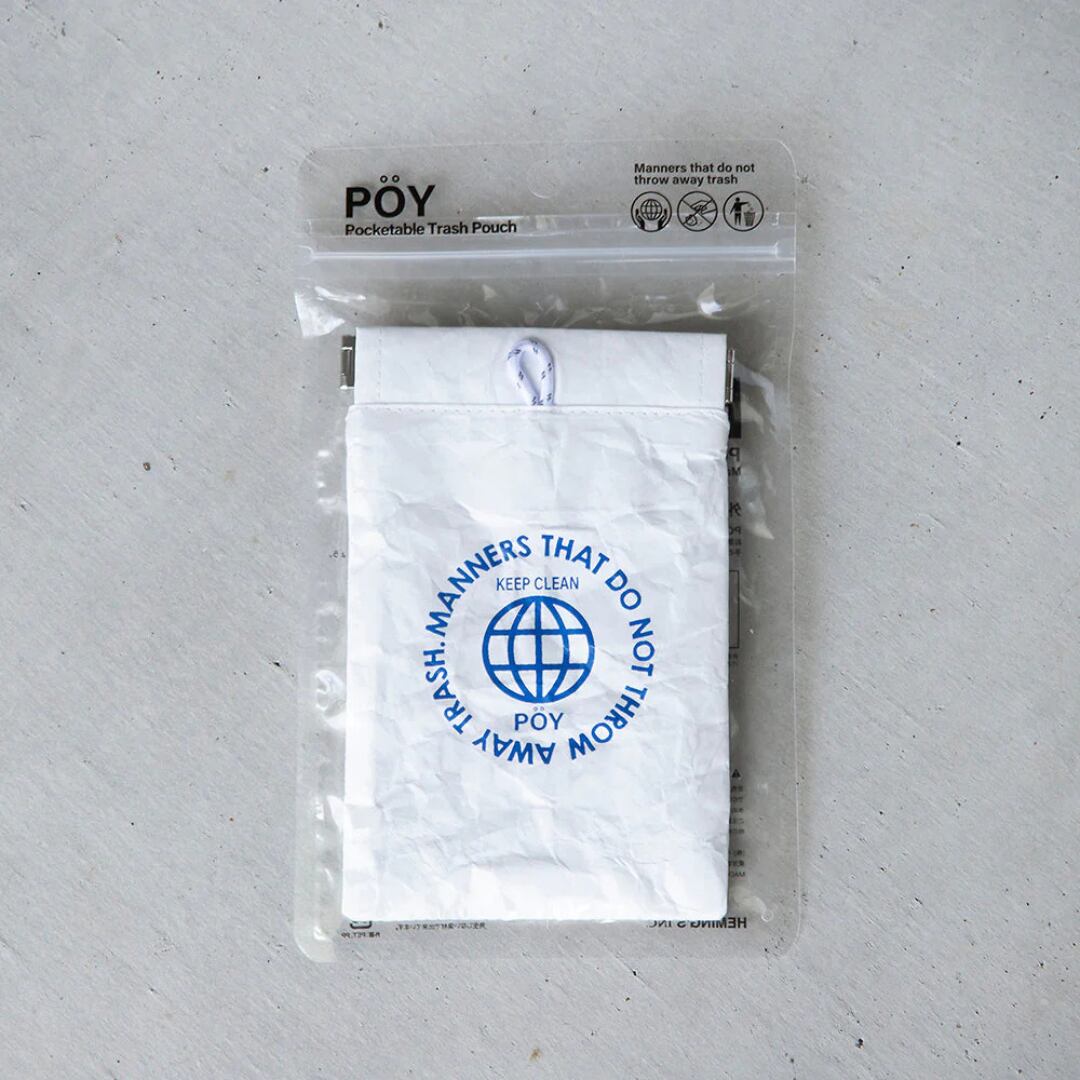 紙のような質感とアイコンデザインがかわいいタイベック素材のPOYです。POY(ポーイ)は、外出先で出てしまうちょっとしたゴミを”ポーイ”っと入れることができる携帯ゴミ箱。