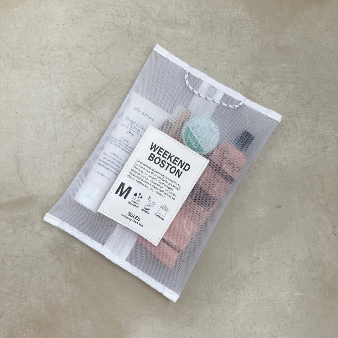 メッシュポーチに入れコンパクトに持ち運べるので荷物が増えた時用にバッグに入れておくのも◎